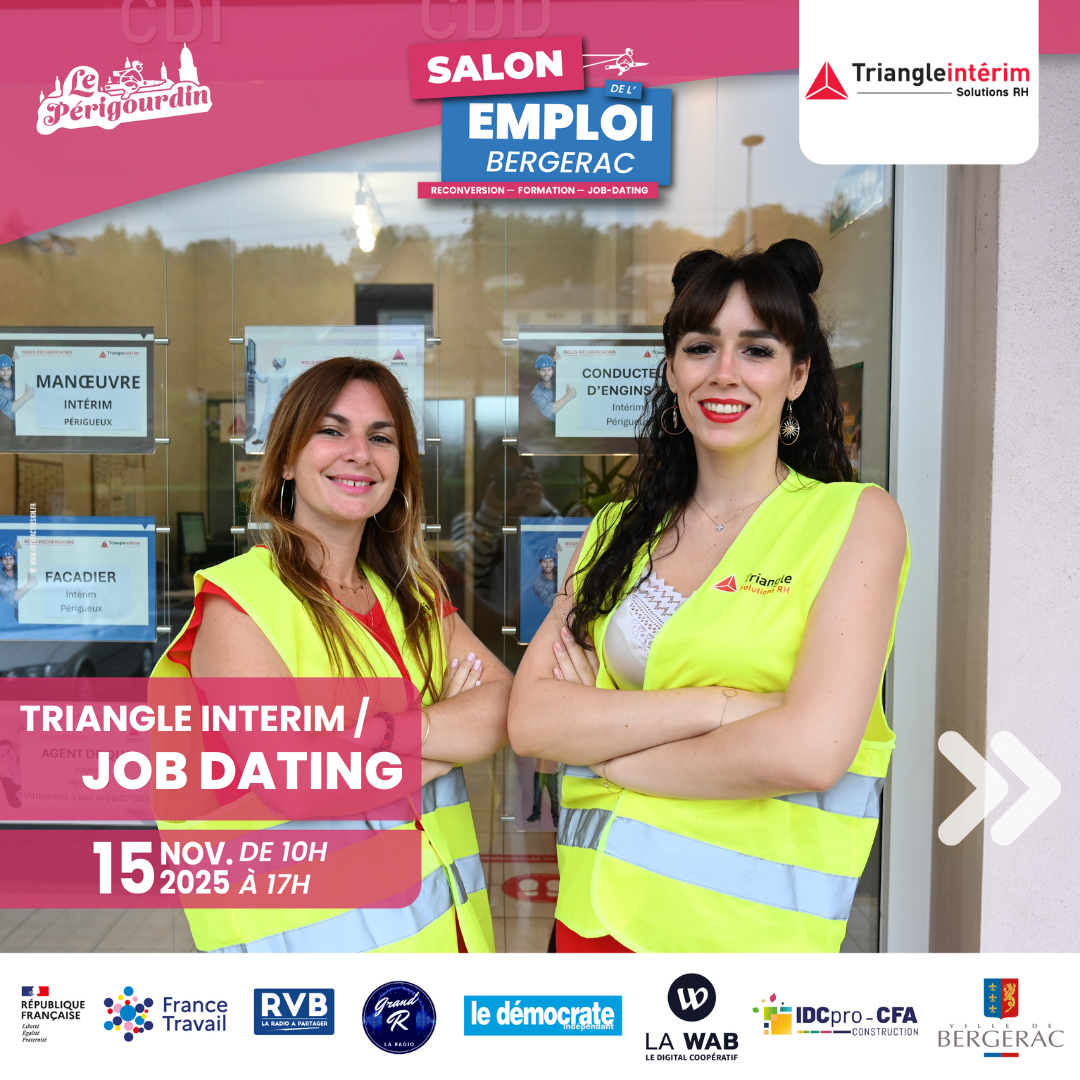 Vous êtes à la recherche d’un emploi ? Ne manquez pas le Salon de l’emploi de Bergerac, le samedi 15 novembre, et venez rencontrer les équipes de Triangle Intérim des agences de Périgueux et Libourne.