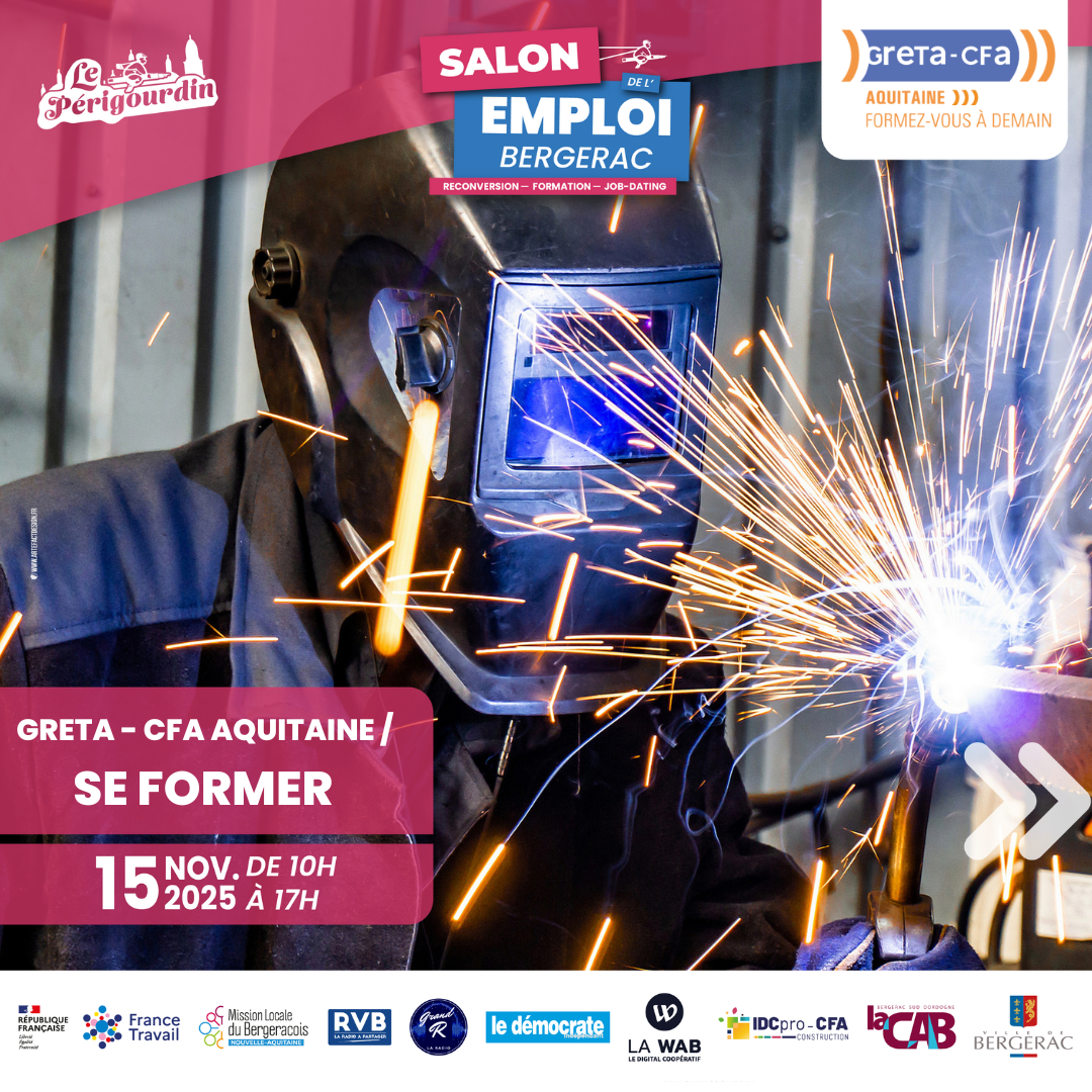 Le samedi 15 novembre, le GRETA-CFA Aquitaine vous attend au Salon de l’Emploi de Bergerac sur l’espace SE FORMER !