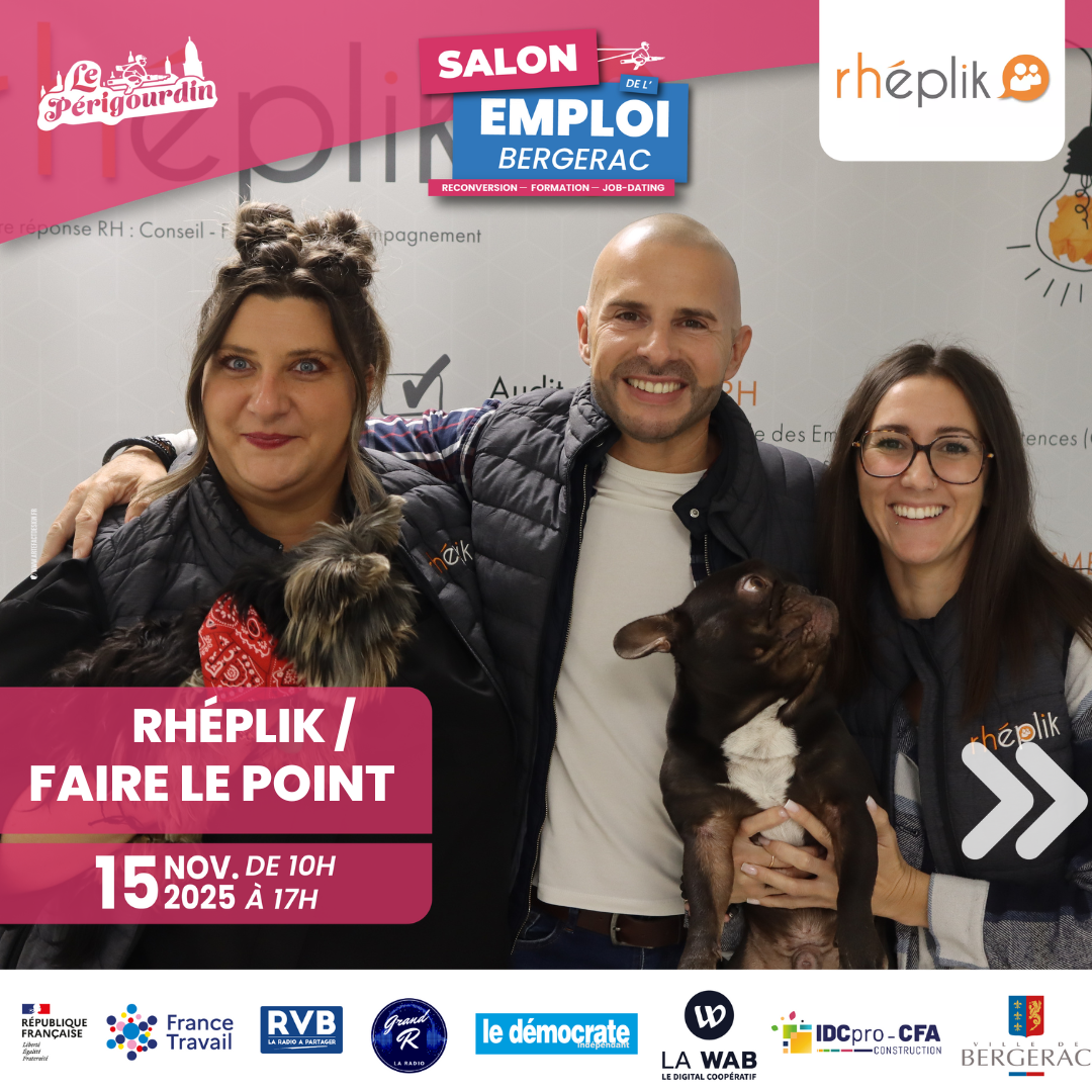 Le 15 novembre, à l’Espace Étincelle à Périgueux, l’équipe de Rhéplik vous ouvre ses portes pour une journée unique dédiée à votre avenir professionnel.