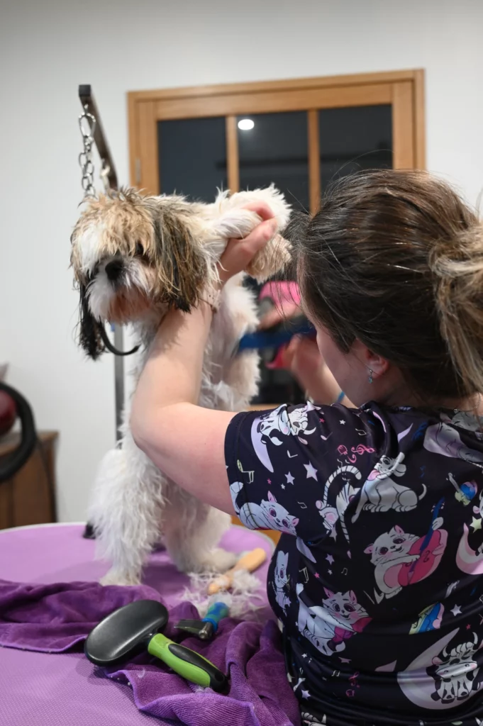 Samantha réalise toutes les étapes du toilettage pour chiens, chats, lapins et cochons d’Inde :