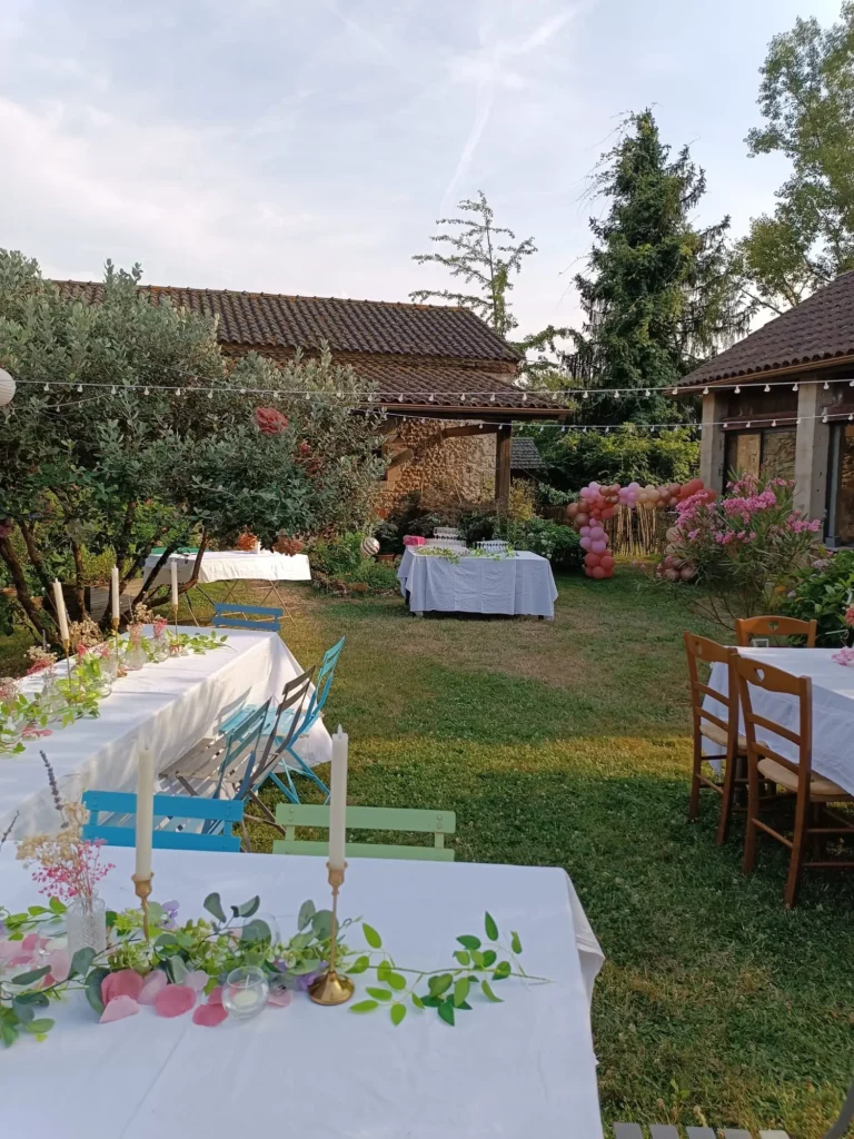 On passe par un petit jardin pour accéder à la maison, être accueillis par une serveuse qui nous avait préparé une jolie table. Nous etions 9.