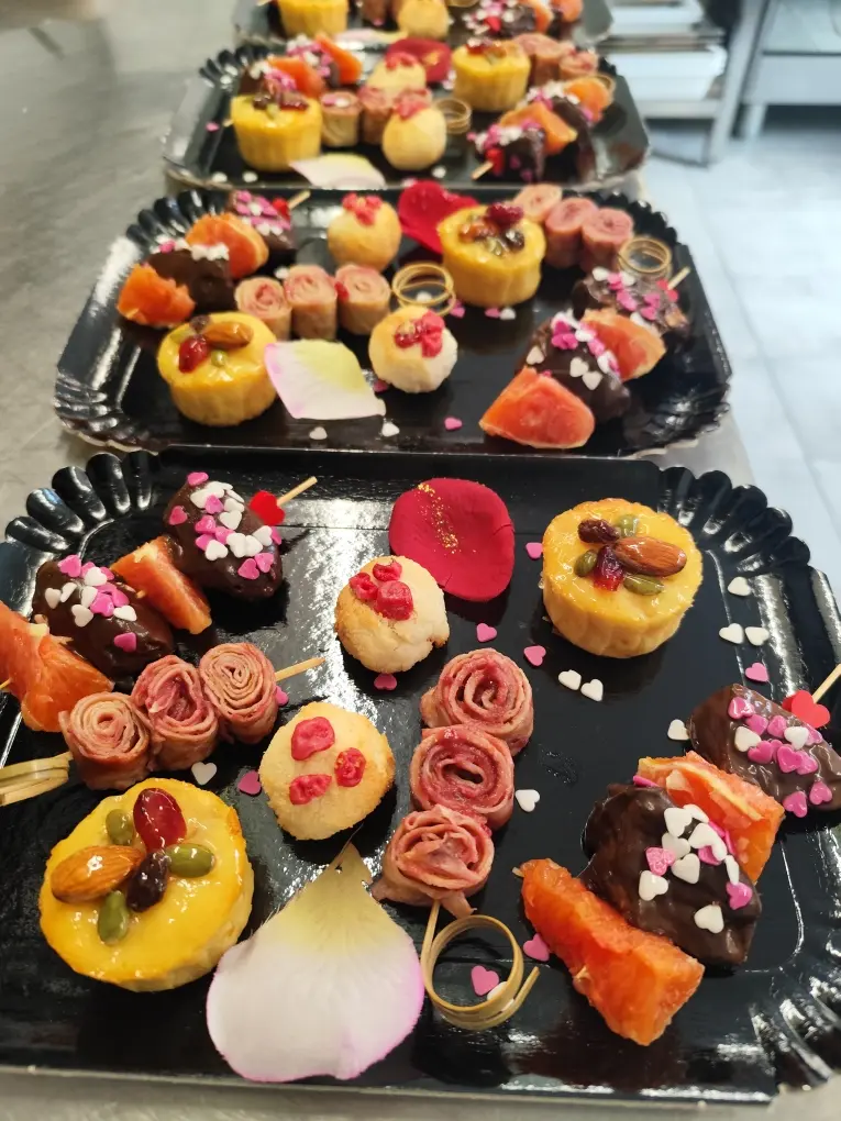- Événements privés ou pros : anniversaires, mariages, repas d’entreprise, avec possibilité de vaisselle jetable fournie. À vous de choisir : buffets, tapas, lunchs ou repas de lendemain de mariage, cocktail…