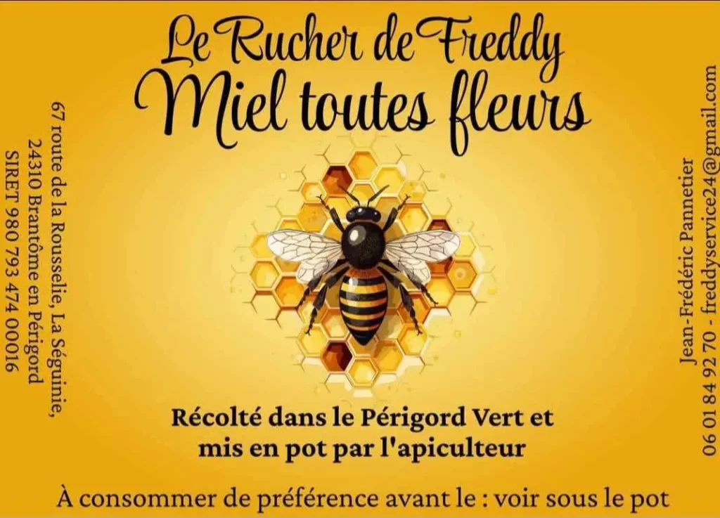 Pour en savoir plus, n’hésitez pas à contacter Freddy ou à lui rendre visite directement sur le marché de Brantôme, tous les vendredis matin. Il se fera un plaisir de vous conseiller ! En plus, pour toutes prestations pour des nids de frelons, il vous offre un pot de son propre miel !
